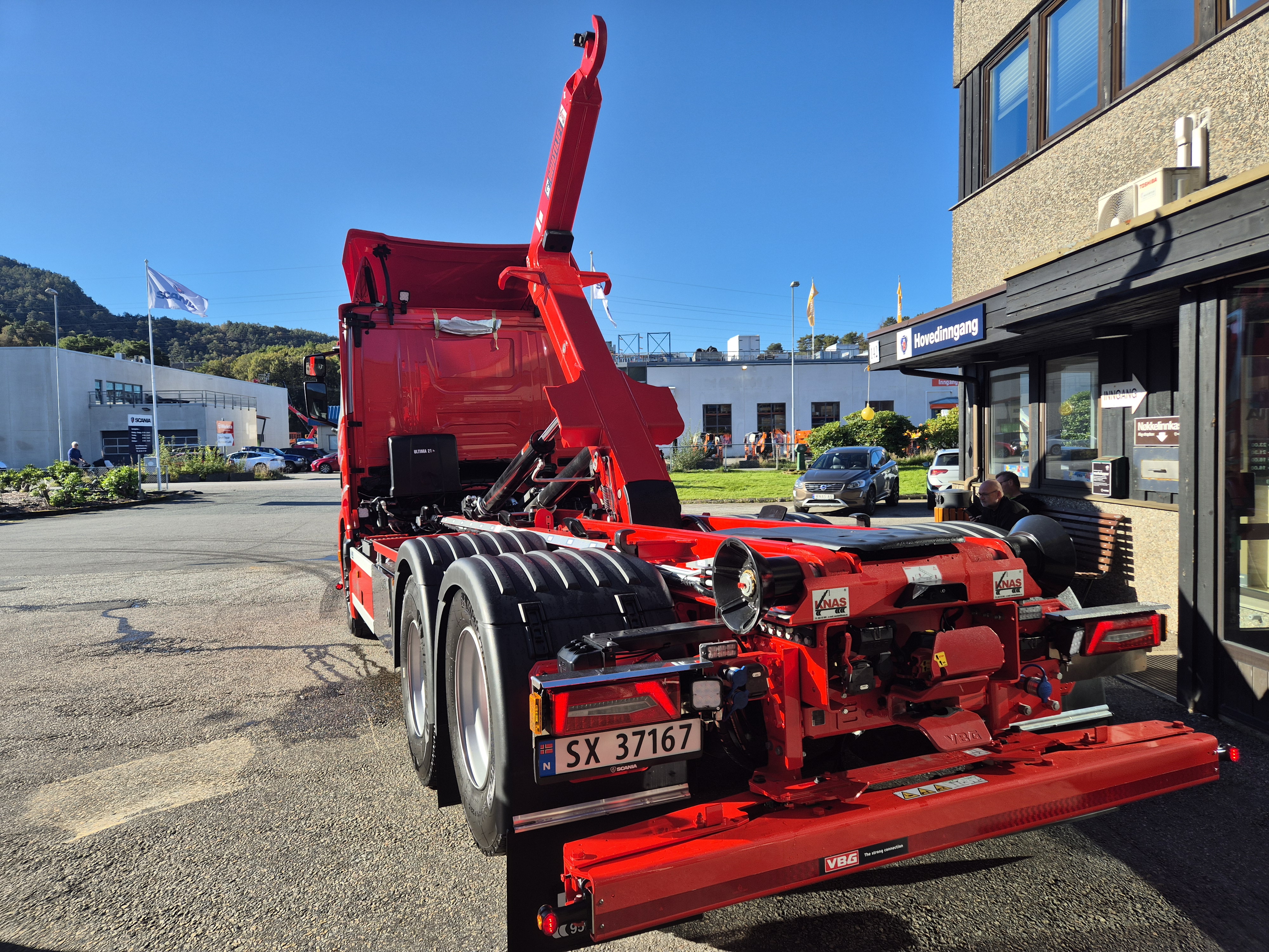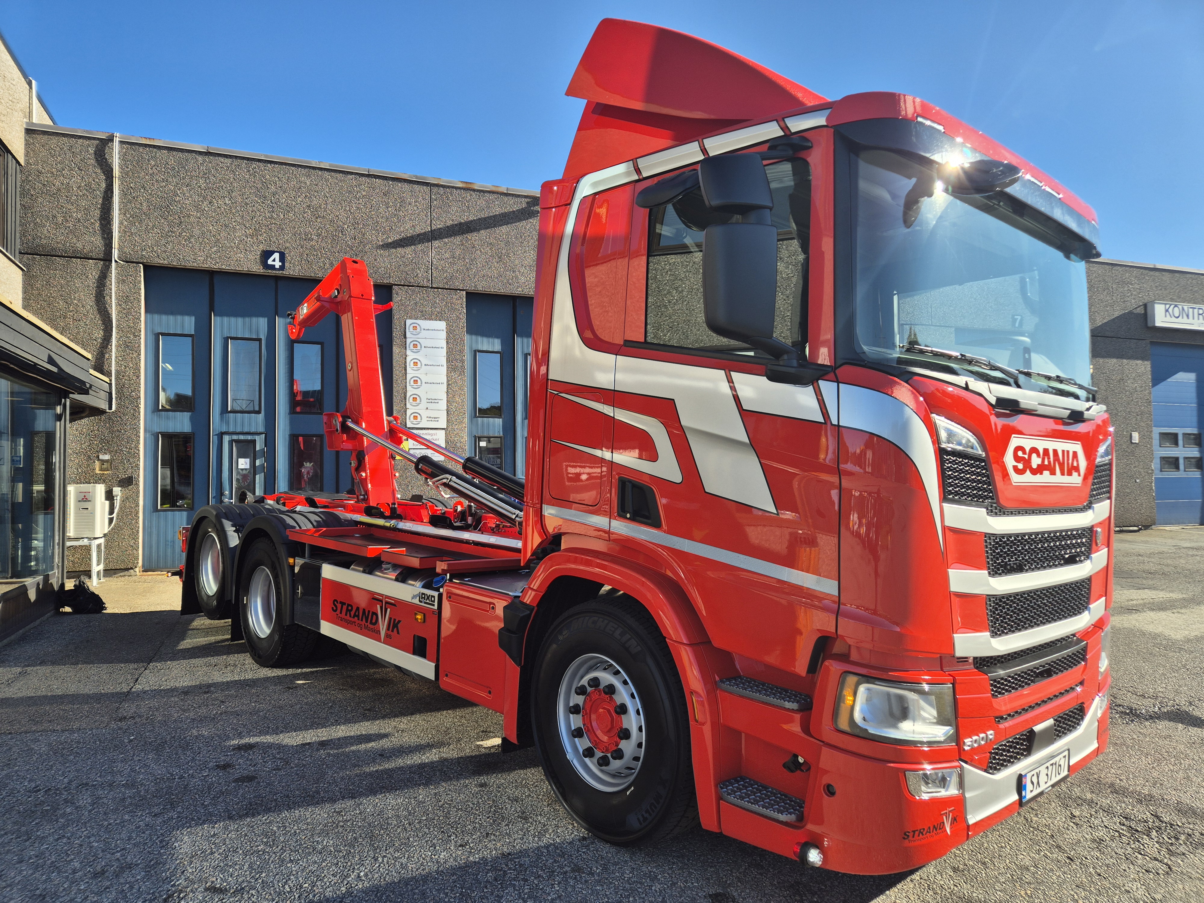 Påbygget er montert av Laxo, og krokløften har en imponerende kapasitet på hele 21 tonn. Den er montert på et miljøvennlig Scania-chassis levert av Norsk Scania i Bergen.